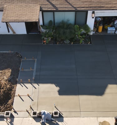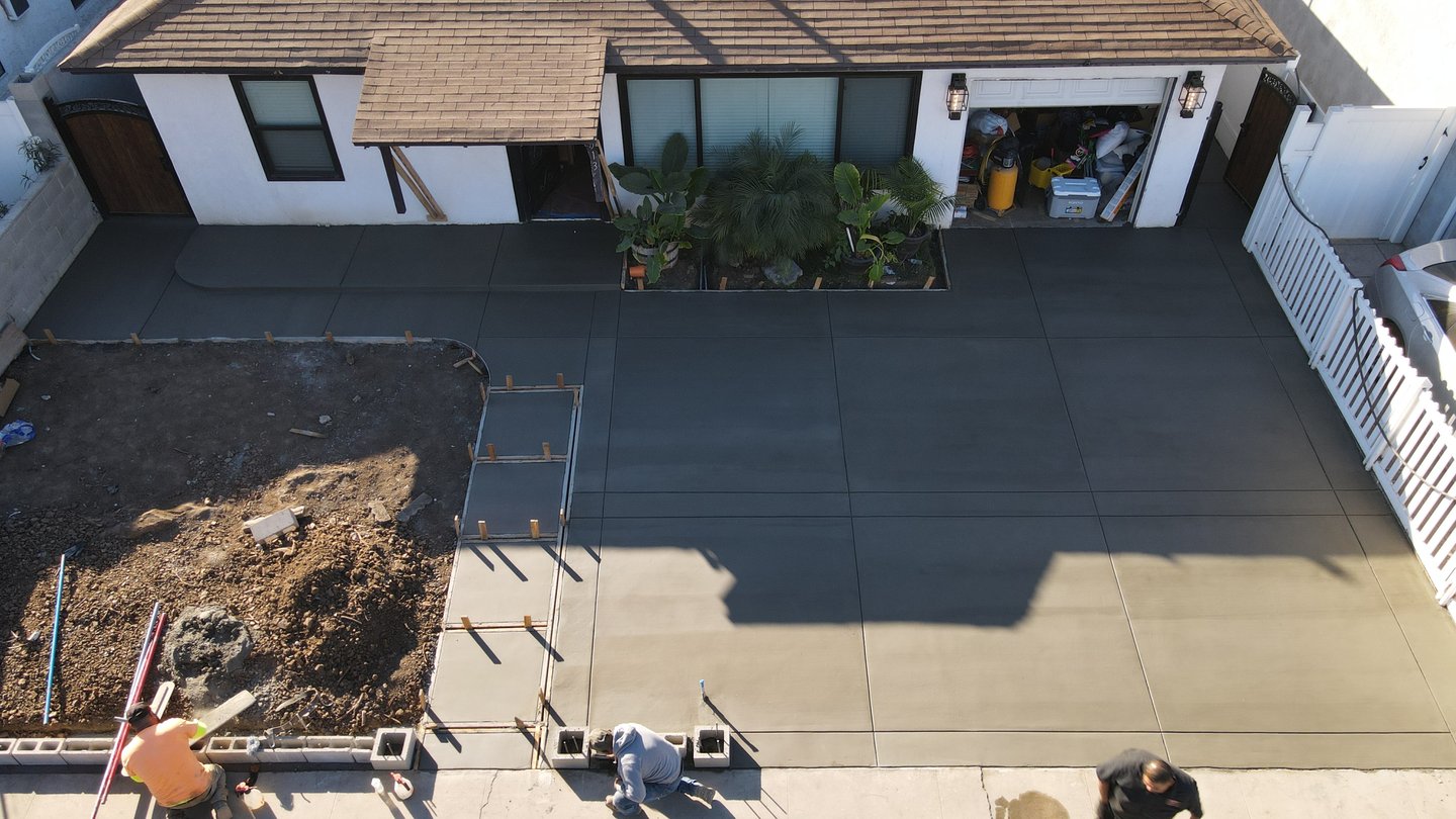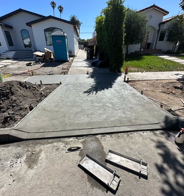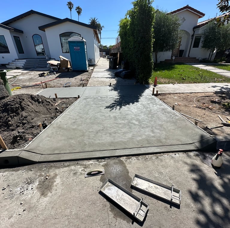 Removed damaged concrete driveway and installed new reinforced driveway and apron with proper slope for drainage, city-compliant finish, and long-term durability.