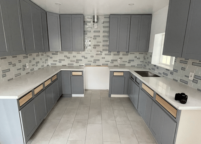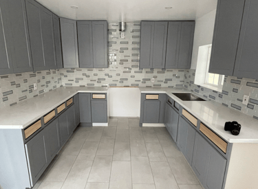 Full kitchen renovation including structural modifications, new cabinetry installation, tile work, and modern finish upgrades completed up to code.